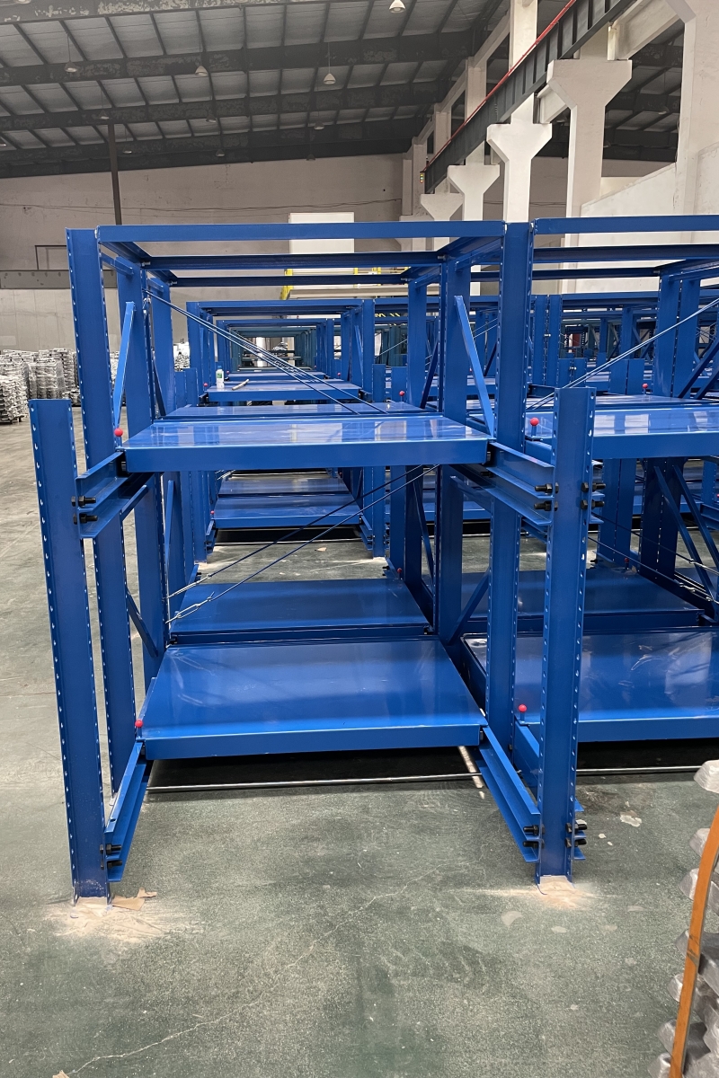 近期一款可以載重超重型的伸縮模具貨架研發成功,耗時半年左右,試生產以后成功在客戶基地實現安裝并使用。