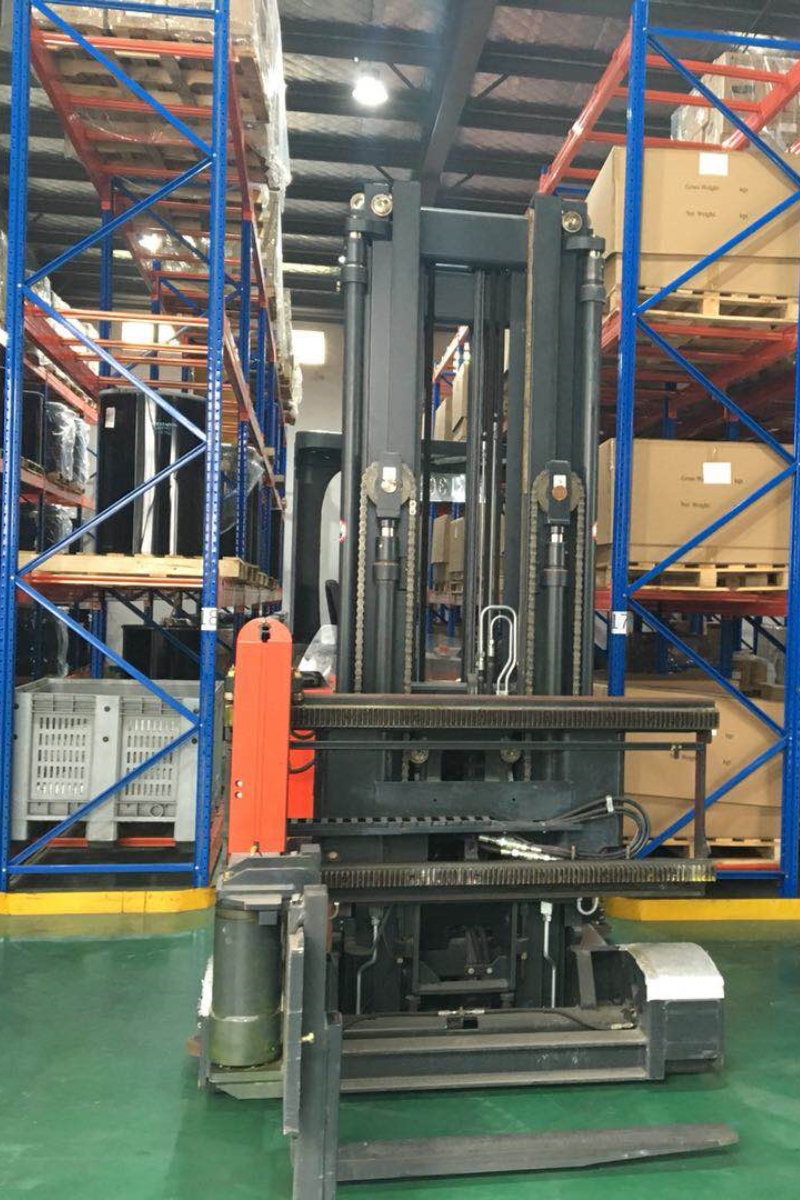 相較于常規的重型貨架,最明顯的優勢就是通道變窄了,其余參數基本參照重型貨架。那么為什么客戶會選擇窄巷式貨架,而不安裝重型貨架呢?就是因為場地有限的原因,現在我國庫房緊張,場地壓力特別大,租金昂貴。因此選用通道更小的窄巷式貨架。同樣重型貨架的標準通道在3.5米以上,而窄巷式貨架最窄的只需要1米左右。但是相對于叉車的要求性更高,也更昂貴。但是優勢在于它可以三向使用插取貨物,并且升高高度都在10米以上,有的甚至更高。