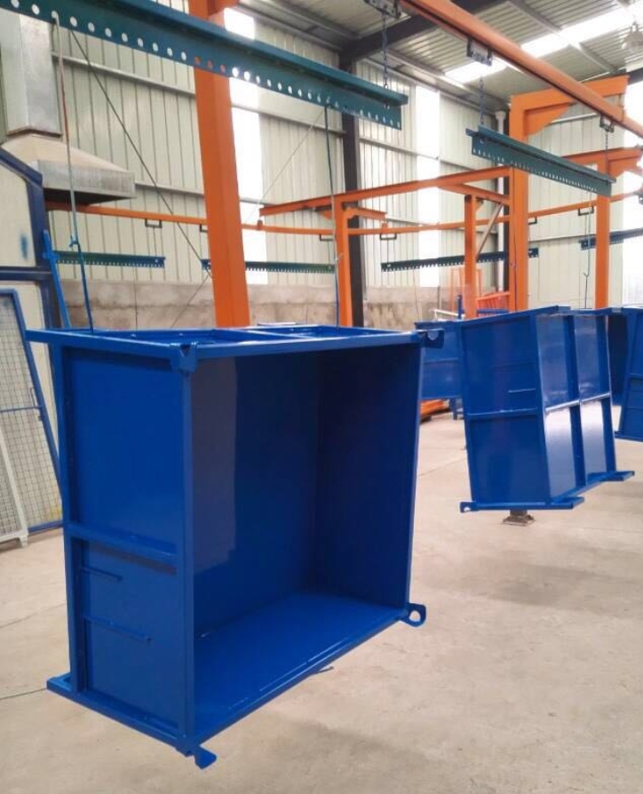 金屬料架、金屬折疊料框都是屬于非標定制金屬產品,因此沒有固定標準,都是根據客戶所需尺寸定制產品,滿足存儲件的存儲要求,長寬高參數。確認好以后,在平穩的水平座上進行焊接生產,按部就班,按圖加工,可以添加封網、檔桿、標識牌、圓角杯、方塊杯、堆垛腳等等。焊接成型后放在自動噴塑流水線上,依次噴槍著粉,經過拋丸噴砂的材料表面無油無銹,塑粉著粉性強,不需要二次補粉,進入烘箱后易烤制凝固,顏色自然光滑,不會出現漏死角現象。如有編號需求,最后進行排碼噴字。