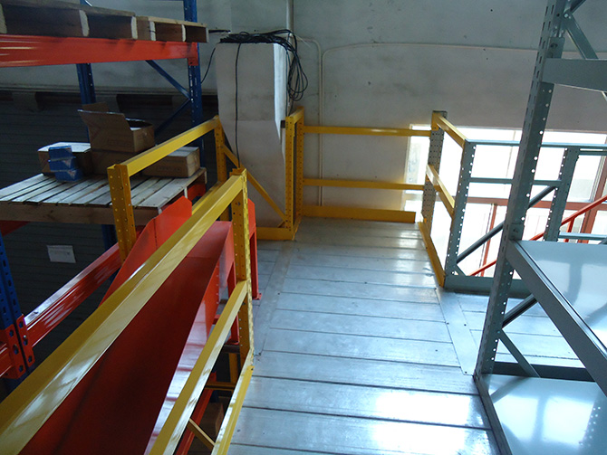 閣樓式貨架,這是一種充分利用空間的簡易貨架。在已有的貨架或工作場地上建造一個中間閣樓以增加儲存面積。閣樓樓板上一般可放輕泡及中小件貨物或儲存期長的貨物,可用叉車、輸送帶、提升機、電動葫蘆或升降臺提升貨物。閣樓上一般采用輕型小車或托盤牽引小車作業。