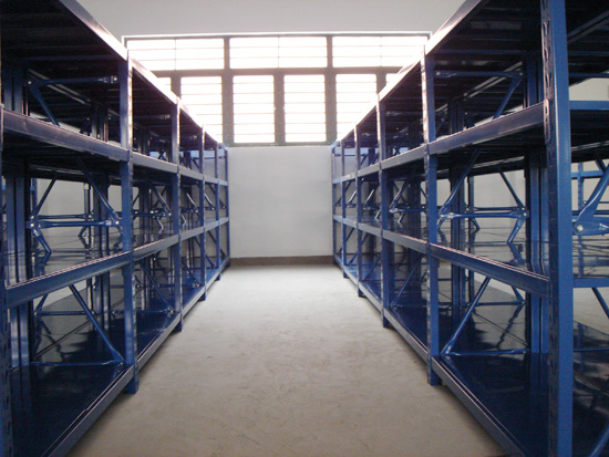 重型移動(dòng)式貨架由重型托盤式貨架演變而成,裸露式結(jié)構(gòu),每?jī)膳咆浖苤糜诘鬃希鬃O(shè)有行走輪,沿軌道運(yùn)行,底盤內(nèi)安裝有電機(jī)及減速器、報(bào)警、傳感裝置等。系統(tǒng)僅需設(shè)1~2個(gè)通道,空間利用率極高。結(jié)構(gòu)與輕中型移動(dòng)式貨架類似,區(qū)別在于重型移動(dòng)式貨架一定是電動(dòng)式的,貨物由叉車進(jìn)行整托存取,通道通常為3m左右,主要用于一些倉(cāng)庫空間不是很大、要求最大限度地利用空間的場(chǎng)所,適用于機(jī)械制造等行業(yè)。