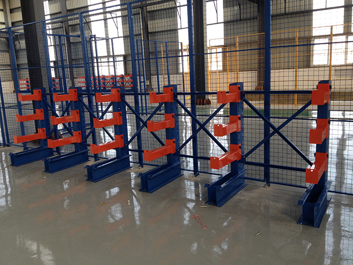 懸臂式貨架適用于存放長物料、環型物料、板材、管材及不規則貨物。懸臂式貨架立柱多采用H型鋼或冷軋型鋼,懸臂采用方管、冷軋型鋼或H型鋼,懸臂與立柱間采用插接式或螺栓連接式,底座與立柱間采用螺栓連接式,底座采用冷軋型鋼或H型鋼。貨物存取由叉車、行車或人工進行。
