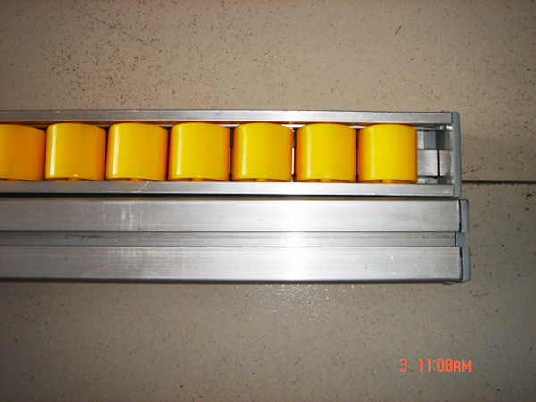 流利式貨架結構特點:流利式貨架的流利條直接連接到前后橫梁及中間支撐梁上,橫梁直接掛在支柱上,流利條安裝傾斜度取決于貨箱的尺寸、重量以及流利架的深度,通常取5%~9%。流利條滾輪的承載力為6kg/只,當貨物較重時,可以在一個滾道安裝3-4根流利條。通常在深度方向上每隔0.6m安裝一根支撐梁以增加流利條的剛度。當滾道較長時,可用分隔板將滾道隔開。取貨端需安裝制動片使貨物減速,降低沖擊。