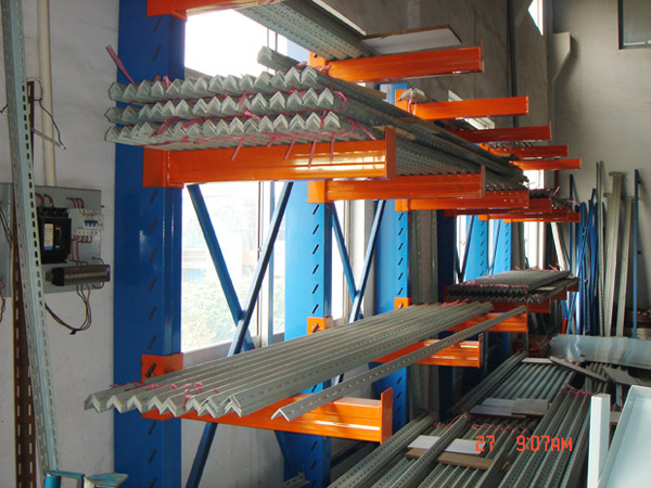 懸臂式貨架適用于存放長物料、環型物料、板材、管材及不規則貨物。懸臂式貨架立柱多采用H型鋼或冷軋型鋼,懸臂采用方管、冷軋型鋼或H型鋼,懸臂與立柱間采用插接式或螺栓連接式,底座與立柱間采用螺栓連接式,底座采用冷軋型鋼或H型鋼。貨物存取由叉車、行車或人工進行。貨架高度通常在2.5米以內(如由叉車存取貨則可高達6米),懸臂長度在1.5米以內,每臂載重通常在1000KG以內。