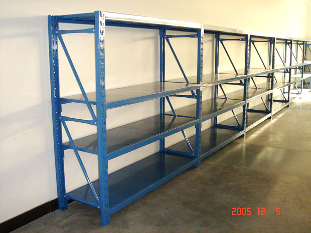 中型貨架,屬于倉儲貨架的一種,擱板貨架類型。是按貨架的承載量來區分與命名的。按照這一劃分原則中型貨架介于輕型貨架和重型貨架之間,故名中型貨架。通常貨架承載150kg/-600kg層(貨架載荷絕大多數是以層為單位的承載量計算)。