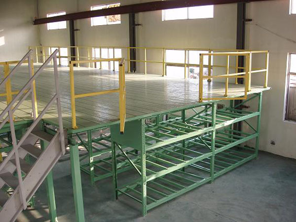 閣樓式貨架系統是在已有的工作場地或貨架上建一個中間閣樓,以增加存儲空間,可做二、三層閣樓,宜存取一些輕泡及中小件貨物,適于多品種大批量或多品種小批量貨物,人工存取貨物.貨物通常由叉車、液壓升降臺或貨梯送至二樓、三樓,再由輕型小車或液壓托盤車送至某一位置。