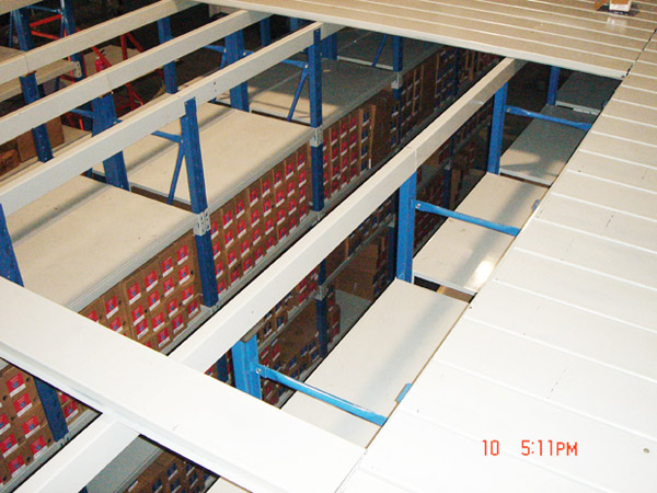 2、閣樓貨架樓面鋪設貨架專用樓板,與花紋鋼板或剛格柵相比層載能力強、整體性好、層載均勻、表面平整、易鎖定等特點。