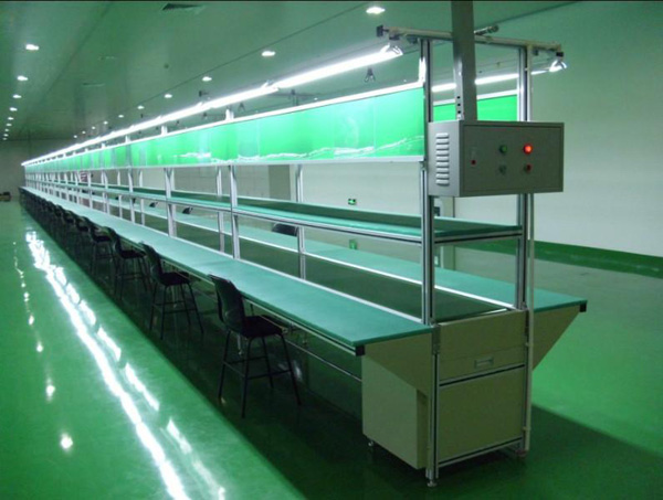 流水線又稱為裝配線,一種工業上的生產方式,指每一個生產單位只專注處理某一個片段的工作,以提高工作效率及產量;按照流水線的輸送方式大體可以分為:皮帶流水裝配線、板鏈線、倍速鏈、插件線、網帶線、懸掛線及滾筒流水線這七類流水線。一般包括牽引件、承載構件、驅動裝置、漲緊裝置、改向裝置和支承件等組成。流水線可擴展性高,可按需求設計輸送量,輸送速度,裝配工位,輔助部件(包括快速接頭、風扇,電燈,插座,工藝看板,置物臺,24V電源,風批等,因此廣受企業歡迎;流水線是人和機器的有效組合,最充分體現設備的靈活性,它將輸送系統、隨行夾具和在線專機、檢測設備有機的組合,以滿足多品種產品的輸送要求。輸送線的傳輸方式有同步傳輸的/(強制式),也可以是非同步傳輸/(柔性式),根據配置的選擇,可以實現裝配和輸送的要求。輸送線在企業的批量生產中不可或缺。