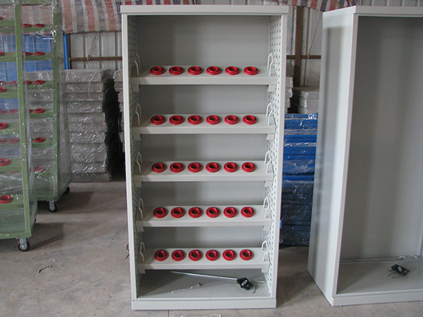 刀具架適用于加工車間、維修車間等場合,可分類放置刀具,并可靈活移動方便取用。現代貨架廠生產的HY-HSK系列刀具車成多邊成型的前后側板上有模數化的人字孔,可將刀具座掛板按水平或15、30傾斜放置,方便多種刀具的存放。高強度腳輪,車前為兩個定向輪,車后為兩個萬向帶 剎車輪,推行平穩,方向性好,剎車固定后不會滑動。結構特點 1.配有標簽,明確分類. 2.快速拿出工具,節約查找時間. 3. 配有輪子,便于移動. 4.抽屜可拉出100%。