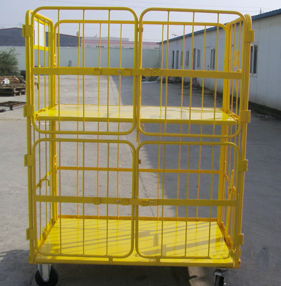 物流臺車又叫載貨臺車或籠車,是一種安裝有四只腳輪的運送與儲存物料的單元移動集裝設備。常用于大型超市的物流配送或工廠工序間的物流周轉。物流臺車又叫載貨臺車或籠車,周轉車,是一種安裝有四只腳輪的運送與儲存物料的單元移動集裝設備。常用于大型超市的物流配送或工廠工序間的物流周轉。