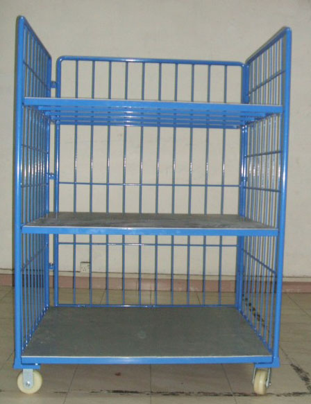 物流臺車又叫載貨臺車或籠車,是一種安裝有四只腳輪的運送與儲存物料的單元移動集裝設備。常用于大型超市的物流配送或工廠工序間的物流周轉。物流臺車又叫載貨臺車或籠車,周轉車,是一種安裝有四只腳輪的運送與儲存物料的單元移動集裝設備。常用于大型超市的物流配送或工廠工序間的物流周轉。
