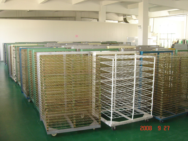 千層架,又叫絲印千層架、乾燥架、千層車、晾曬架、晾紙架、網架、層架臺車。廣泛適用于絲印廠、轉印燙畫廠、印刷電路板廠、電子加工廠、飾品廠、鞋廠、皮帶皮革廠、防靜電器材廠、木器涂裝廠、彩繪玻璃、上糊乾燥、中大型家俱廠、百中窗廉廠,濺鍍廠等。