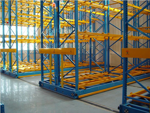 移動式貨架易控制,安全可靠。每排貨架有一個電機驅動,由裝置于貨架下的滾輪沿鋪設于地面上的軌道移動。移動式貨架其突出的優點是提高了空間利用率,一組貨架只需一條通道,而固定型托盤貨架的一條通道,只服務于通道內兩側的兩排貨架。所以在相同的空間內,移動式貨架的儲存能力比一般固定式貨架高得多。